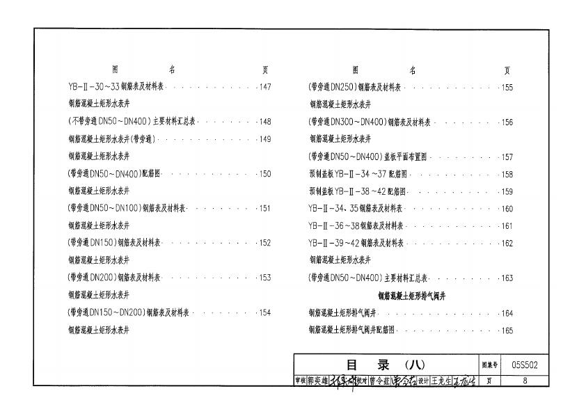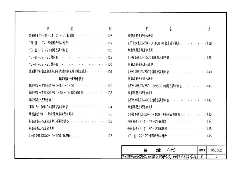 05S502图集,代替S143《圆形立式阀门井及阀门套筒》、S144《矩形卧式阀门井》、S145《水表井及安装》、S146《排气阀、排泥阀安装》;同时废止了S160《给水栓安装》。
