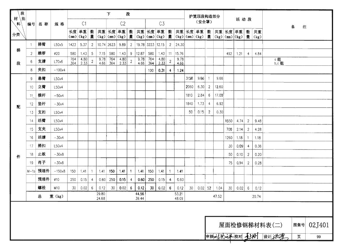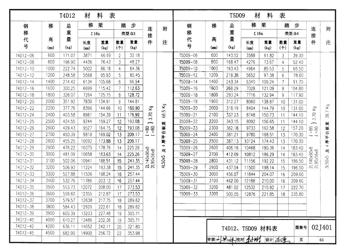 作业台钢梯及栏杆87J432、屋面检修钢梯89J431、吊车钢梯89J433、钢螺旋梯88J434、钢梯96J435。